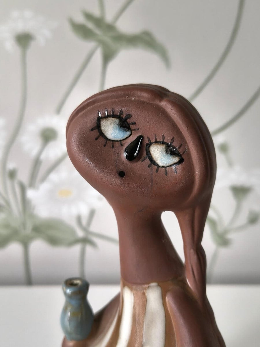 A charming vintage ceramic figurine with expressive design and handcrafted character, reflecting the aesthetic of the 1960s–70s. The gentle expression and soft, flowing shape make it a warm and eye-catching decorative piece.